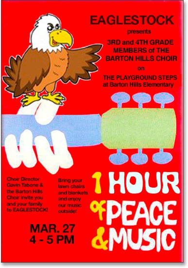 Weather forecasters predict a perfect late afternoon, so get your lawn chairs and blankets, invite your friends, co-workers, and neighbors, and join us for the school’s first “Eaglestock!” The performance will begin at 4 PM.