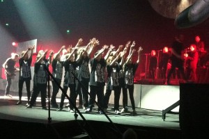 Some members of the Barton Hills Choir performed with Roger Waters last night at a sold out Frank Erwin Center. They sang the choir part of ‘Another Brick in the Wall – part 2’ which is the Pink Floyd classic from ‘The Wall’. The photo above from the show was taken by Michael Marin. Photos below are from the rehearsal. Click each to enlarge.
