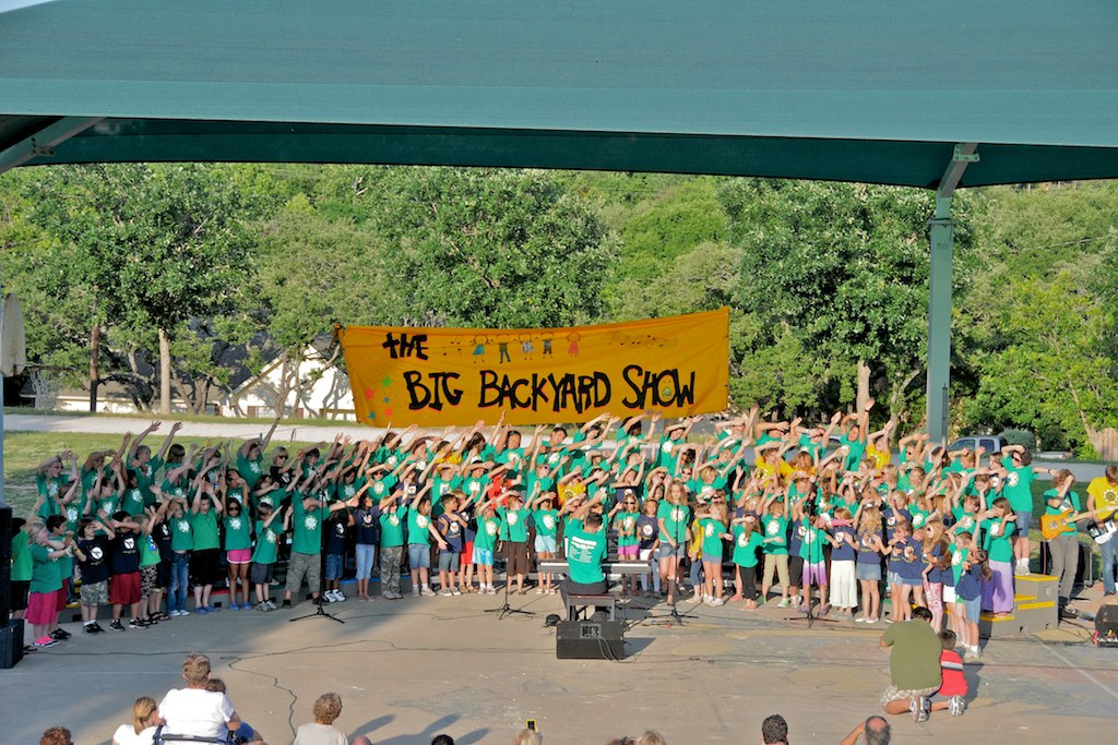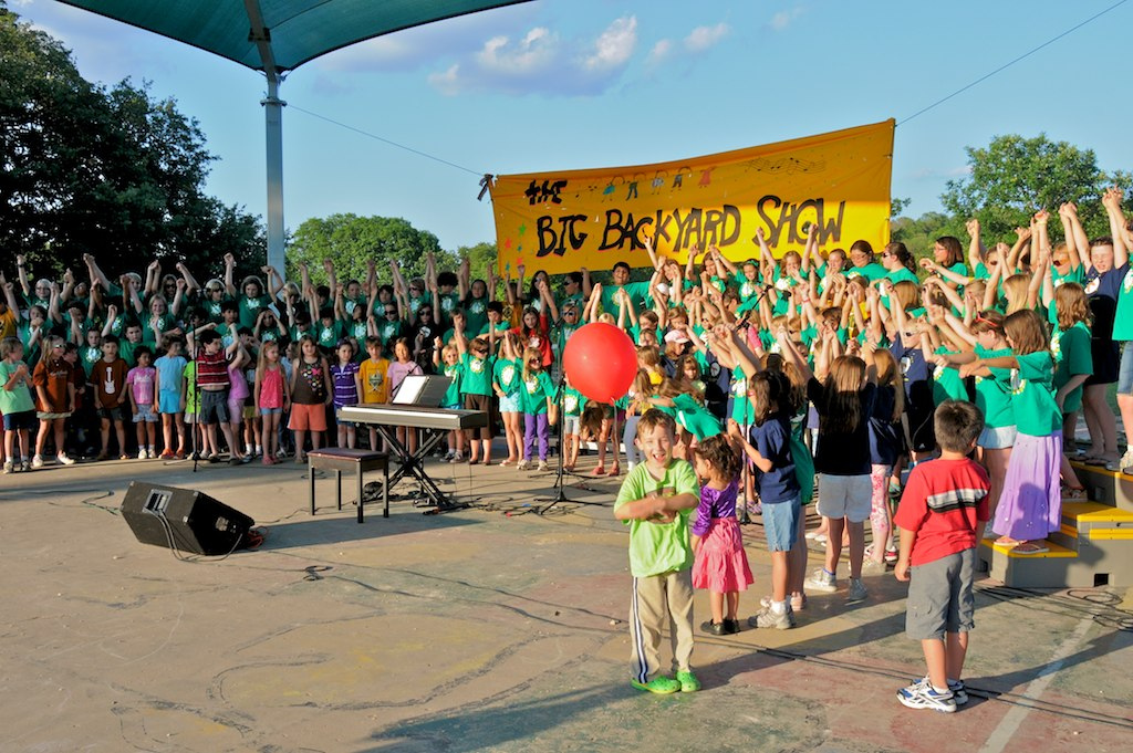 The Big Back Yard Show was the final performance at Barton Hills Elementary for the 2009-2010 school year. Held outside on the school playground in the early evening, the event drew hundreds of appreciative family members, friends, and neighbors and featured free drinks and cookies for all.